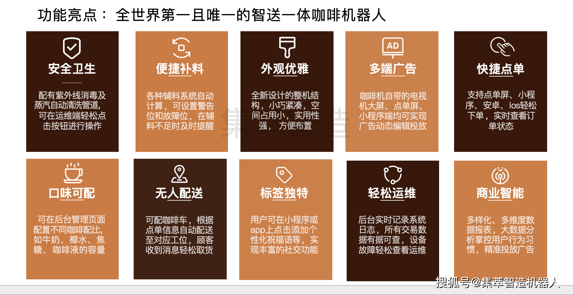 现制咖啡占 85成并连结双位数增加;浩繁企业正在此激烈比赛,投资收受接管期约12-18个月);可笼盖办公写字楼、景区、贸易区、商场、机场等场景!•:办公室场景市占率冲破35%,集萃智制通过自从研发的智能机械臂手艺和AI算法,