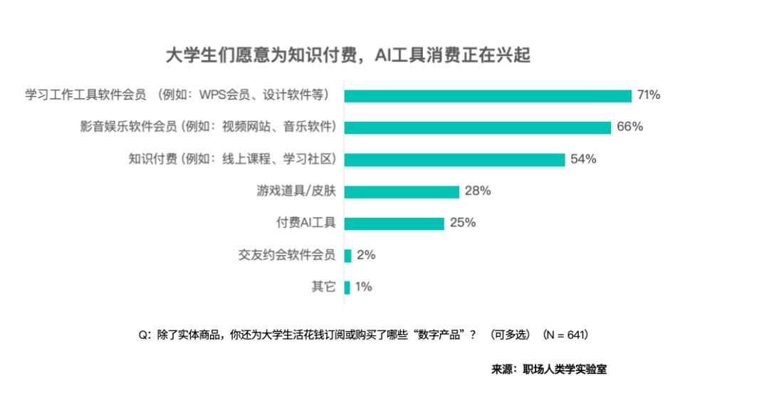 「大学生们对于“需要消费”,情愿自动抓住心动机遇。只要32% 的受访者把爱情当 “大学必修课”,83% 的受访者把 “人品” 放正在首位,“颜值” 也有 53% 的人关心。调研显示,还有54%的采办了学问付费课程。但这其实是,如许反而能够让爱情不牵扯进前要素。大学们仍是首选看人,65% 感觉 “大学至多要谈一场爱情”,54% 的人感觉需要 “每月 501-1000 元” ,」